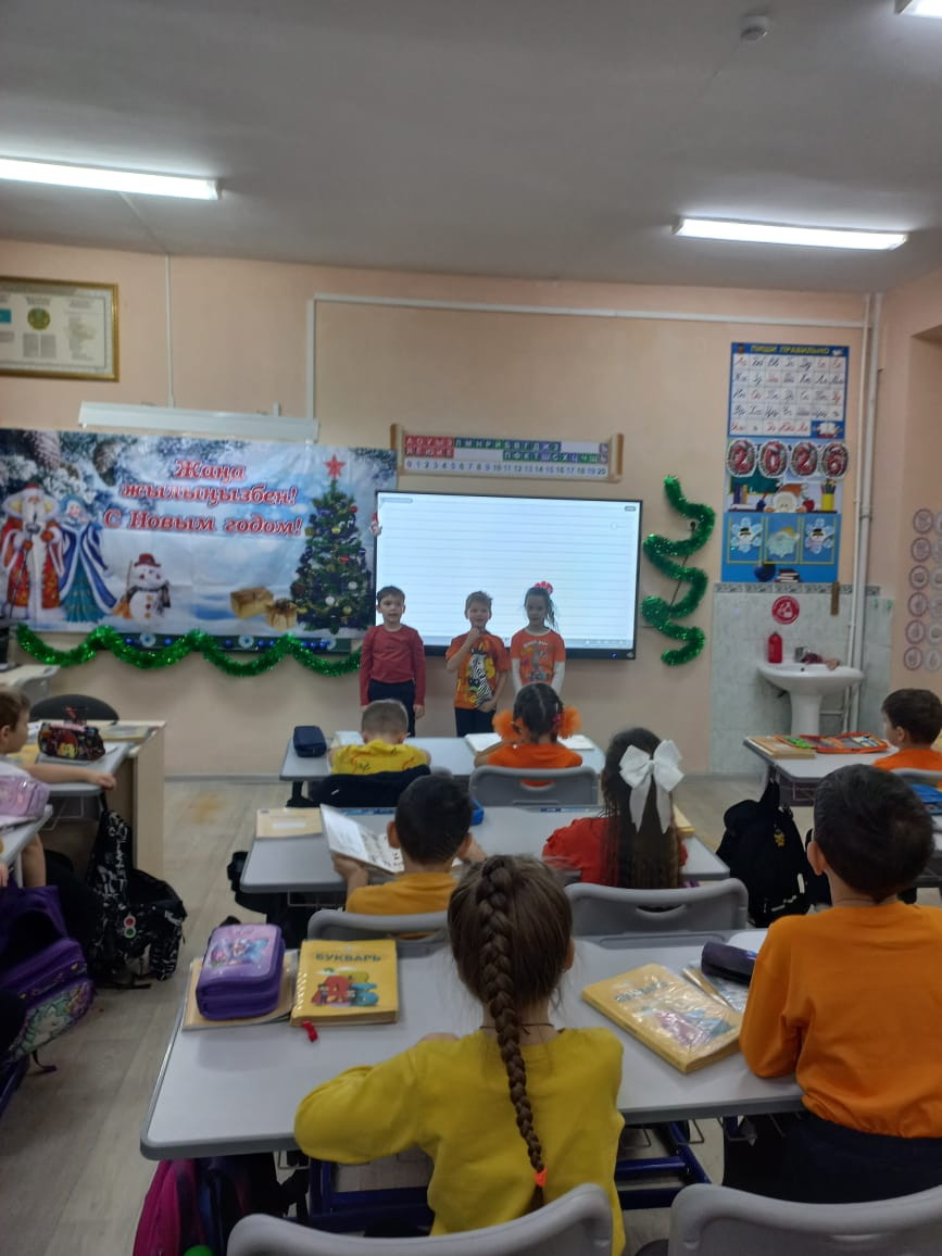 В 1 б классе прошла "Мандариновая вечеринка Были подведены итоги 2 четверти.Ребята попрощались с Букварем,играли,соревновались,танцевали,отгадывали загадки.У всех было мандариновое настроение.
