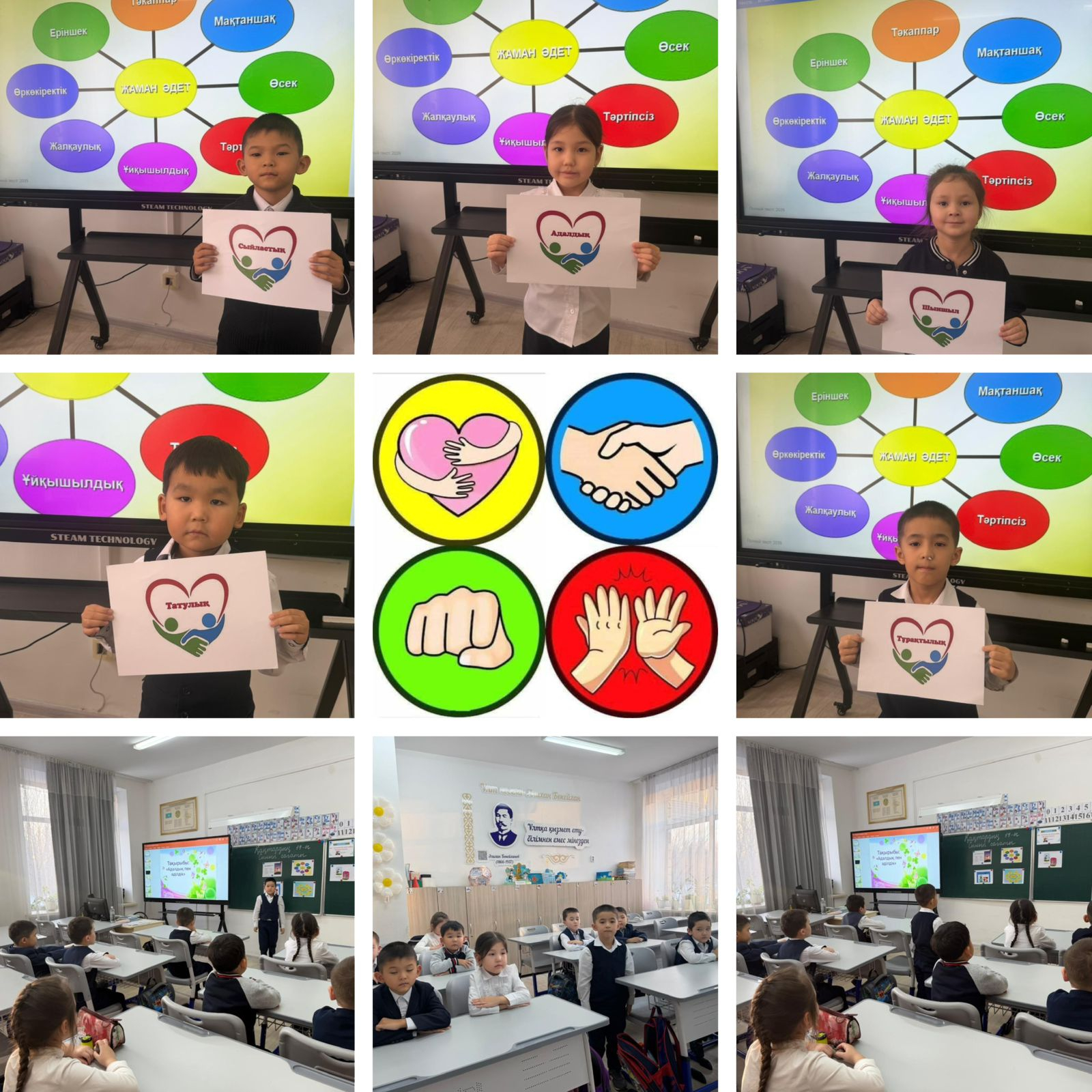 Сынып сағаты барысында оқушылар адал болудың маңызын талқылап, шағын өмірлік жағдаяттар арқылы әділдік ұғымын түсінді. Балалар өз ойларымен ашық бөлісіп, жақсылық жасау мен ереже сақтау – әр азаматтың міндеті екенін айтты.