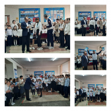 Сегодня в школе на линейке шествовали наших спортсменов. Директор школы А. Мяленко еще раз поздравил ребят с победой и пожелал им дальнейших успехов.