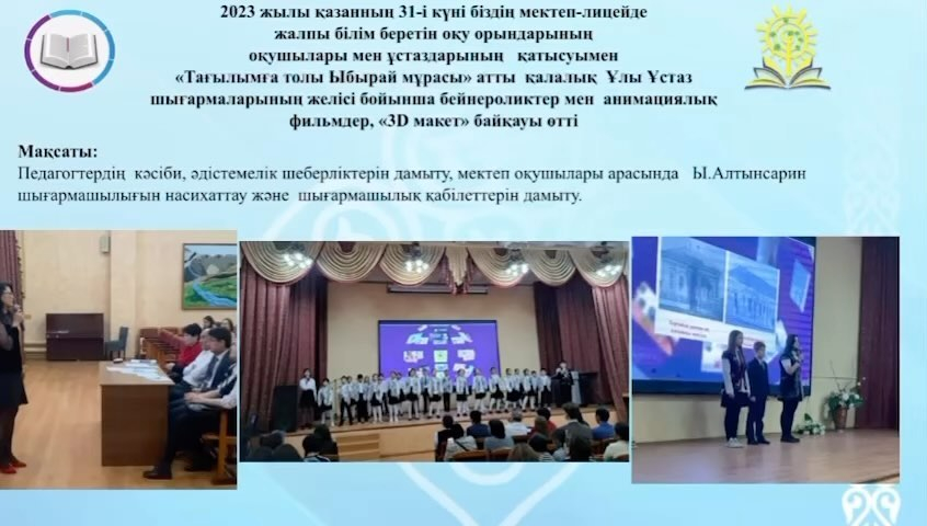 III направление. По направлению» конкурс 3D макетов " учащиеся 8-11 классов, используя возможности Stem лаборатории по содержанию произведений Ибрая Алтынсарина, создавали и соревновались 3D макеты. Школы, учащиеся и учителя, занявшие призовые места.