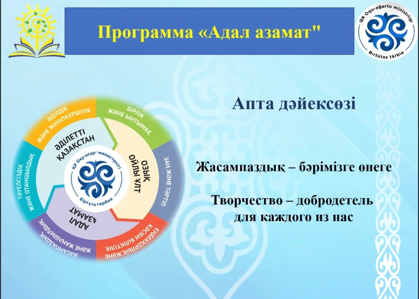 #АдалАзамат #Жасампаздықжәнежаңашылдық #Созиданиеиноваторство #goroo_krg #oqu_agartu_ministrligi