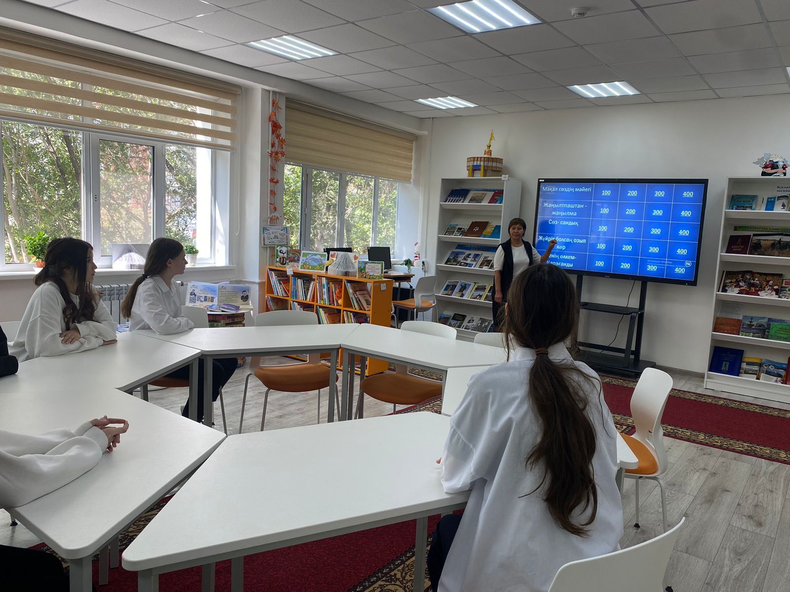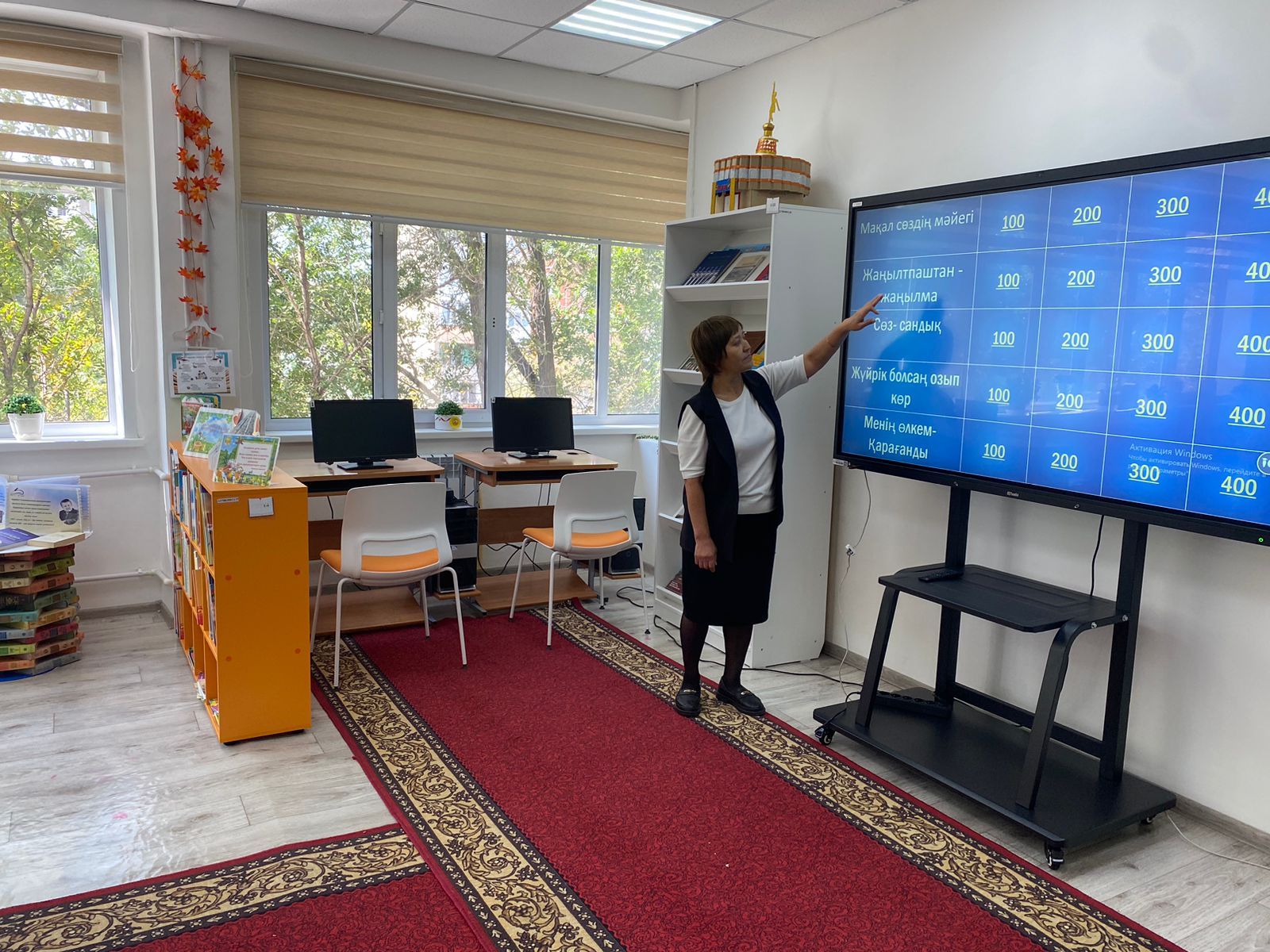 Қазақстан халықтарының тілдері күніне орай 9 "Д"сыныбы оқушылары арасында "Тіл білгірі" сайысы ұйымдастырылды. Оқушылар "Мақал -сөздің мәйегі", "Сөз -сандық" , "Жүйрік болсаң, озып көр" айдары бойынша тапсырмаларды белсенді орындады. Ұйымдастырған: пән мұғалімі Б.К.Абеуова