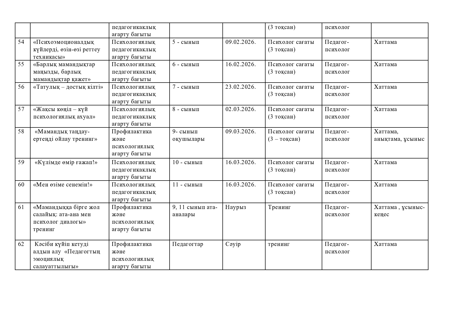 2025-2026 оқу жылына арналған кәсіптік бағдар беру жұмысының кешенді жоспары