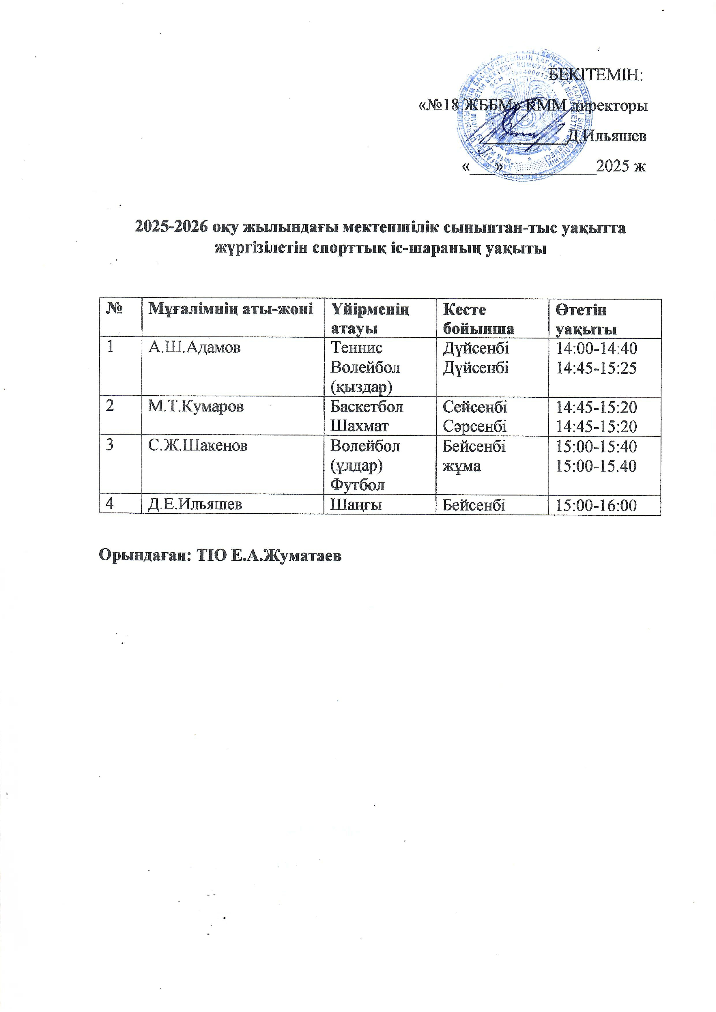 Директордың тәрбие ісі жөніндегі орынбасары:                    Е.А.Жуматаев