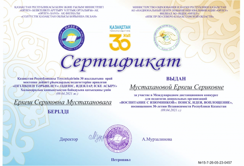 Директордың аты-жөні: Тусупбекова Акмарал Курмановна