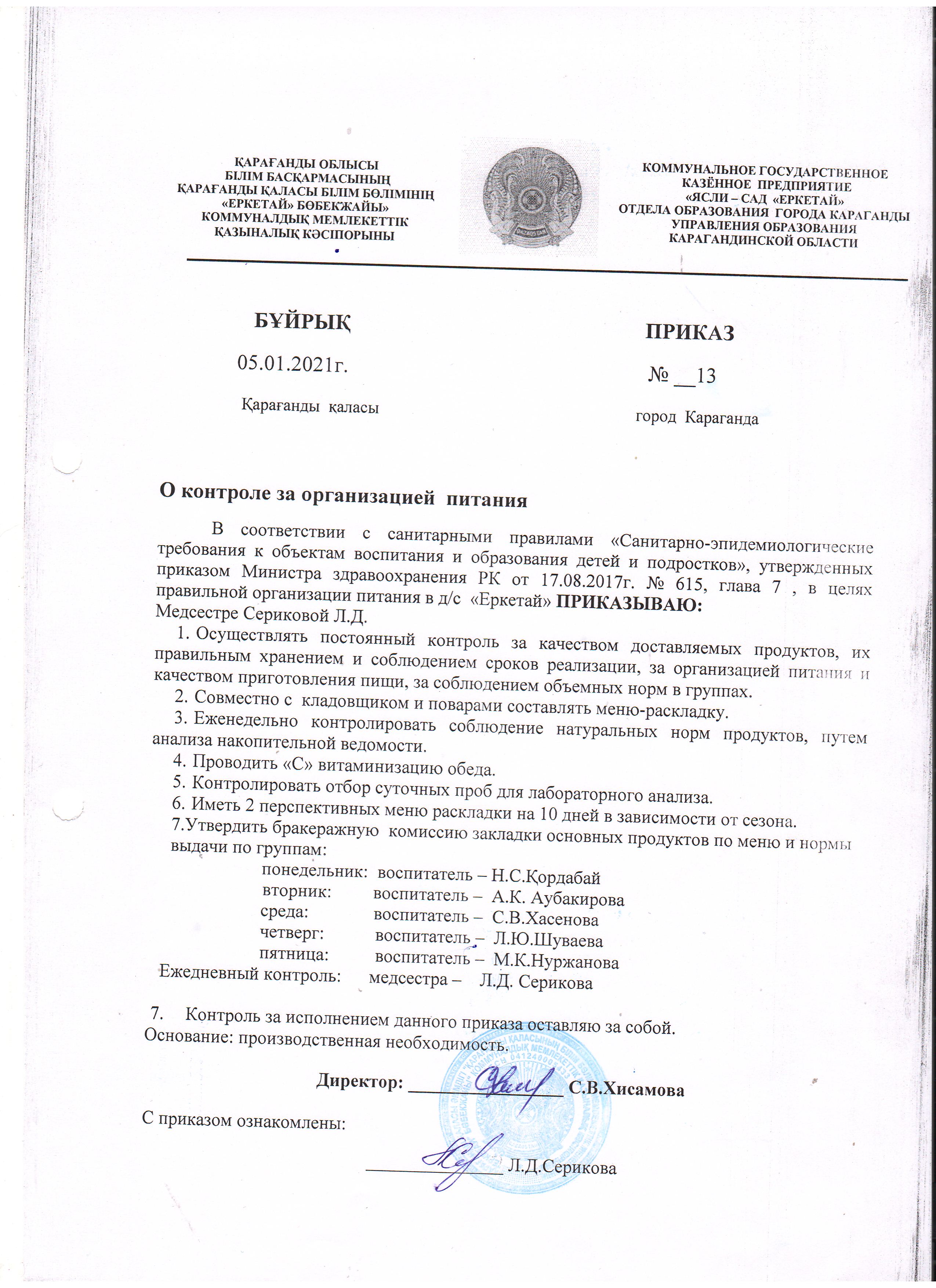 Протокола об итогах конкурса КГКП "Ясли-сад Еркетай"