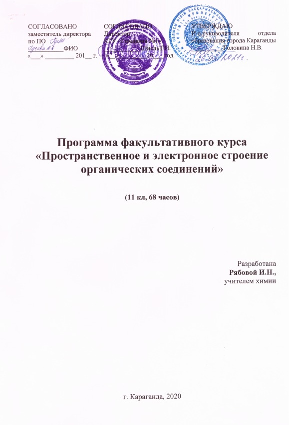 Программа факультативного курса "Пространственное и электронное строение органических веществ"Программа факультативного курса "Пространственное и электронное строение органических веществ" в 11 классе. 68 часов. Составлена учителем химии КГУ "Гимназия № 1" Рябова И.Н. |