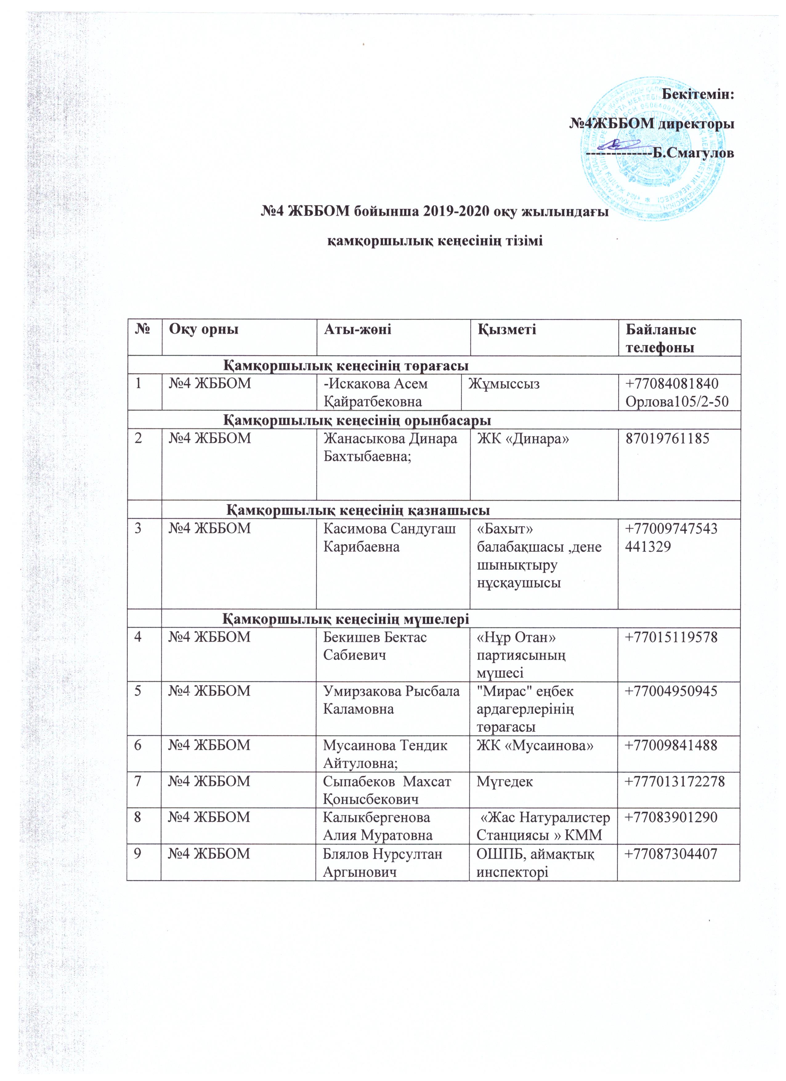 Қамқоршылық кеңесінің тізіміСостав попечительского совета |