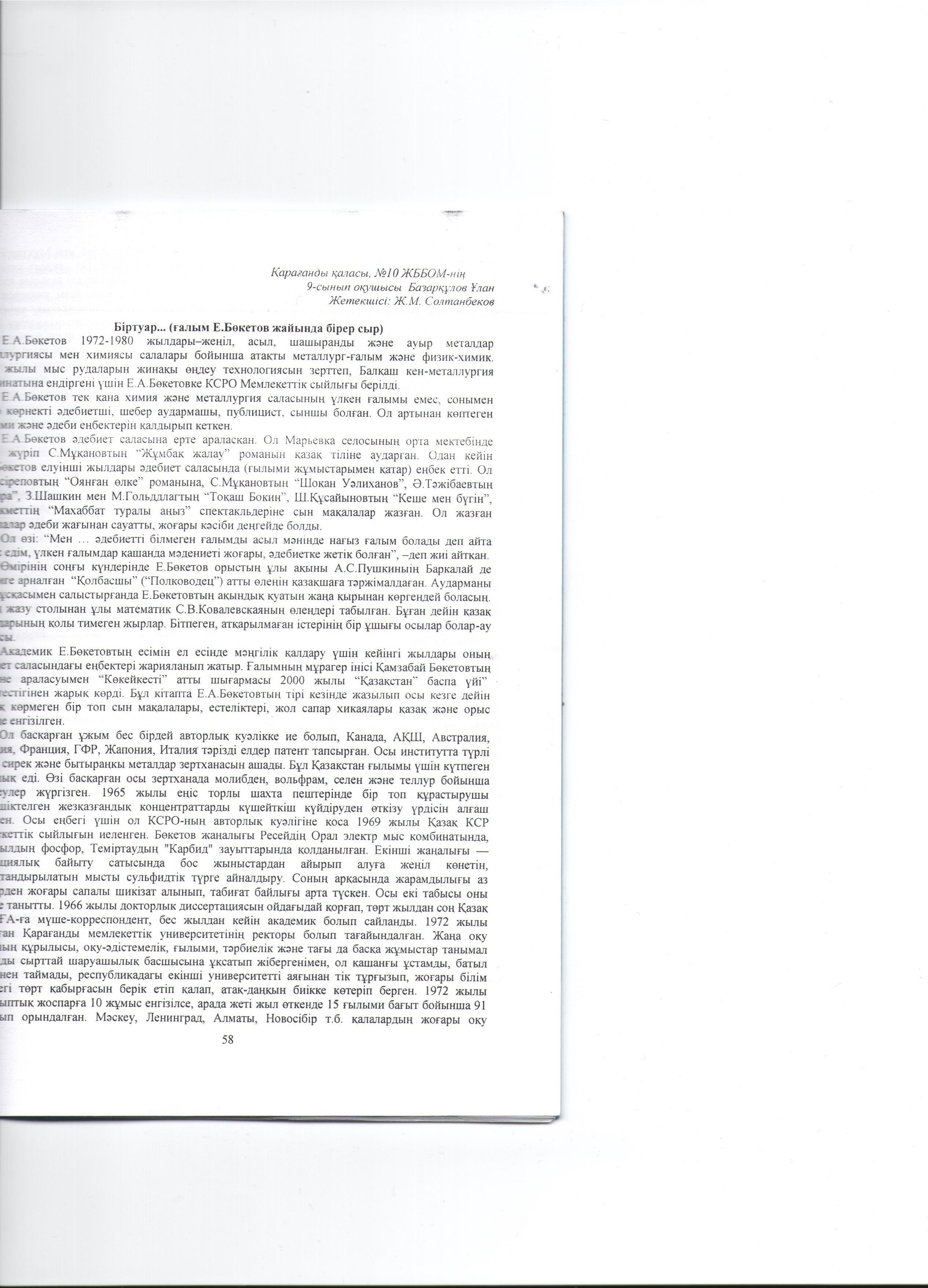 Бір туар ....(ғалым Е.Бөкетов жайында бірер сыр) Солтанбеков Ж.М.Бір туар ....(ғалым Е.Бөкетов жайында бірер сыр) Солтанбеков Ж.М. |