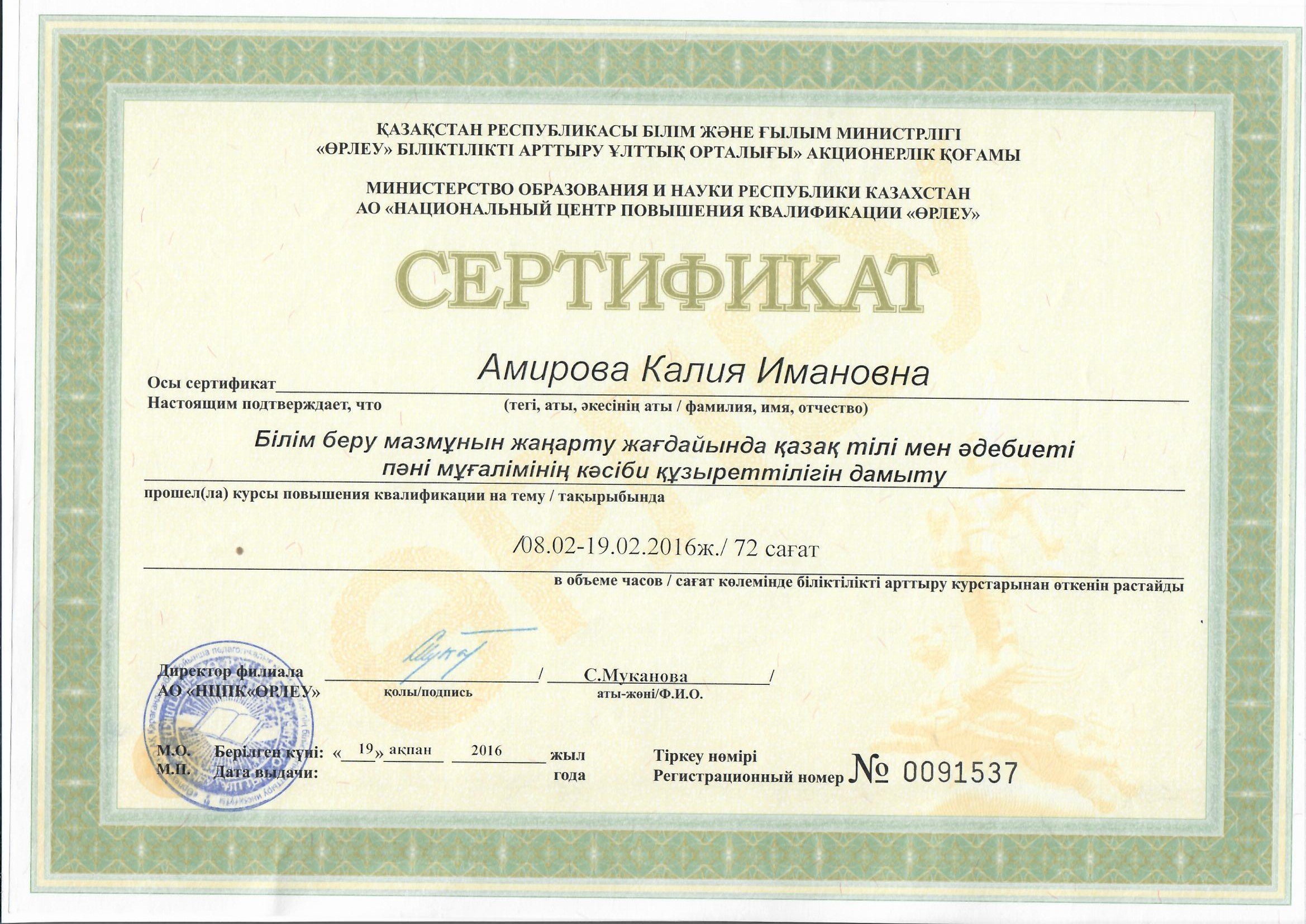 Сертификат Амирова Г.И.Сертификат Амирова Г.И. |
