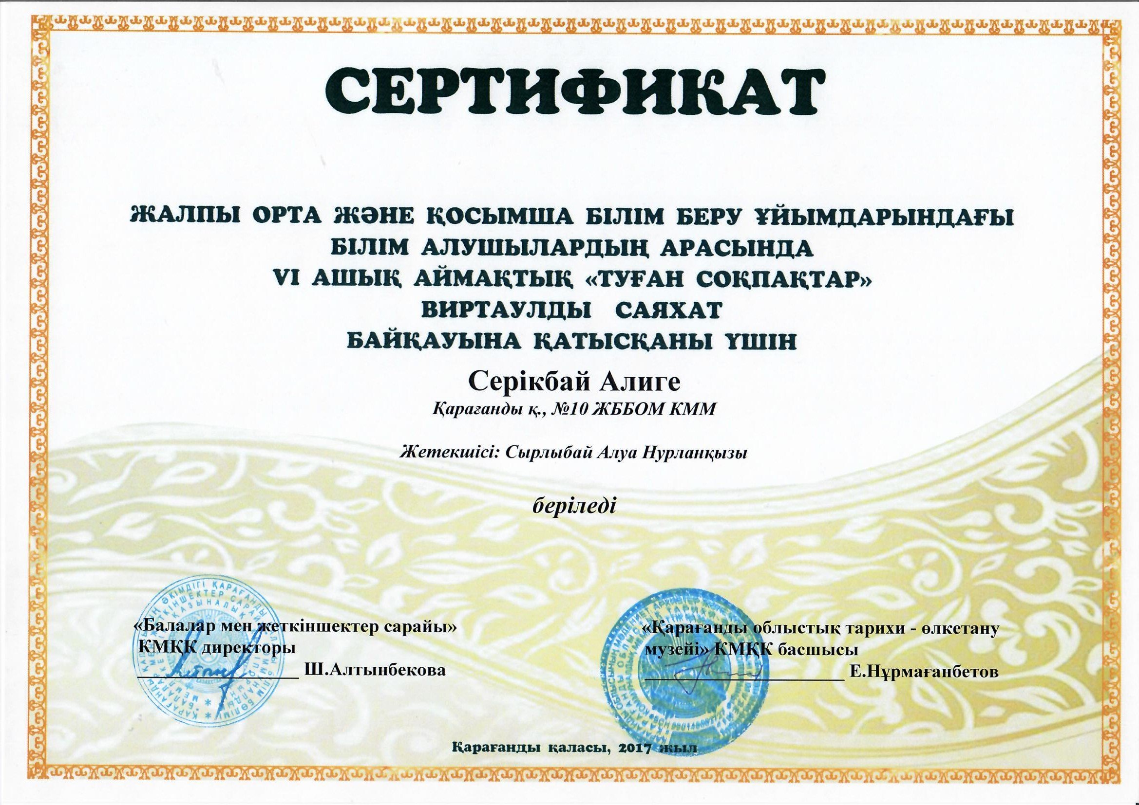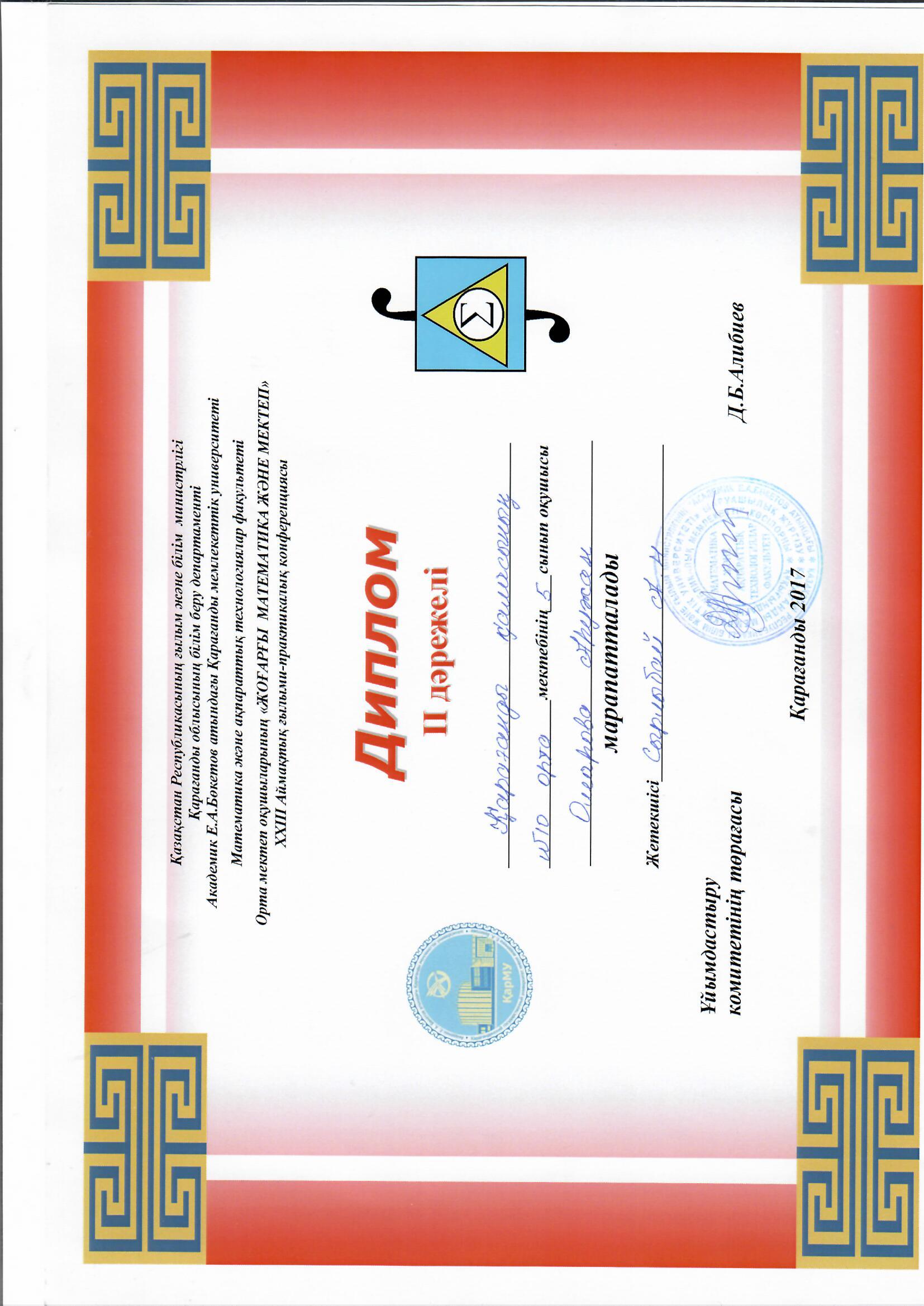 Сырлыбай А.Н. Грамота Сырлыбай А.Н. Грамота |