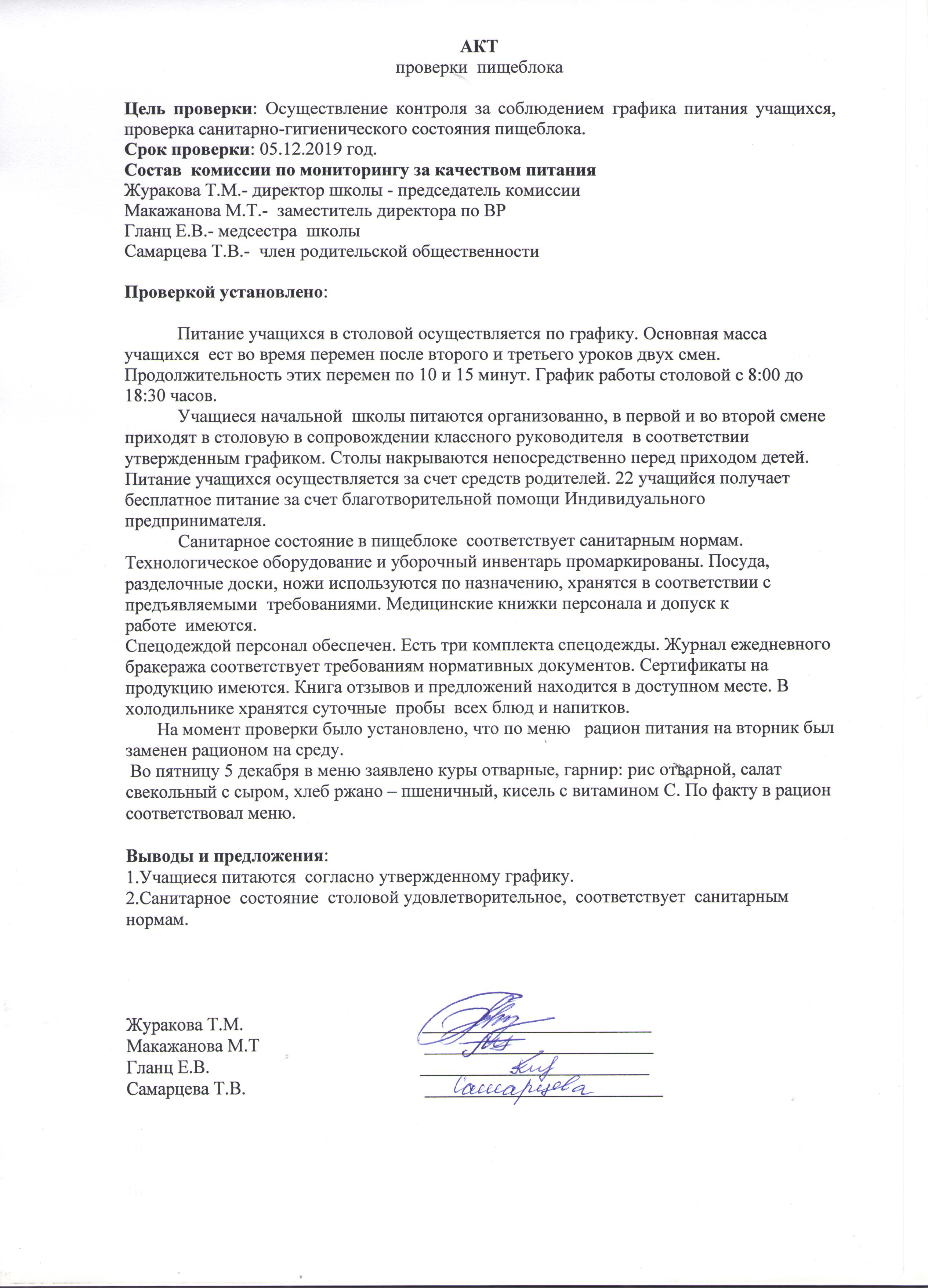 Акт проверки пищеблока 05.12.2019Акт проверки пищеблока 05.12.2019 |