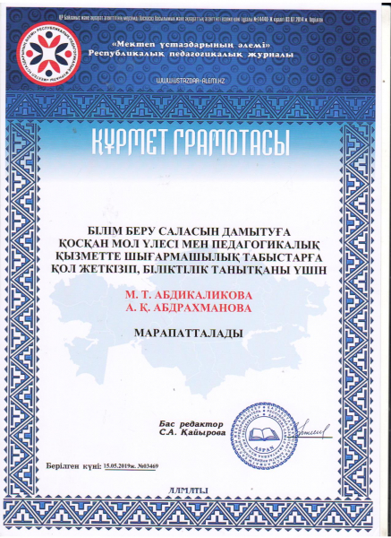 2016-2020 оқу жылындағы бөбекжай-балабақша педагогтарының жетістіктері