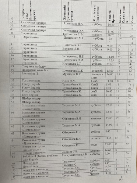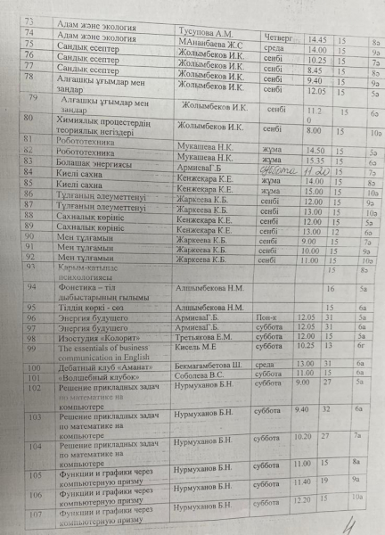 2024-2025 оқу жылындағы сабақтар мен тәрбие іс-шараларына қатысу кестесі