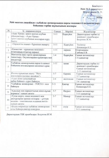 2024-2025 оқу жылындағы сабақтар мен тәрбие іс-шараларына қатысу кестесі