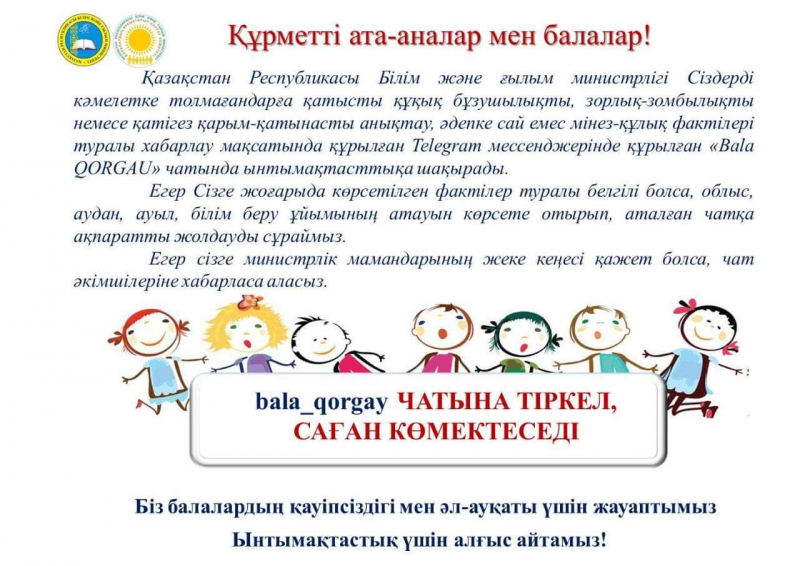 Орта буын оқушылары мен ата-аналарына арналған хабарландыру беті
