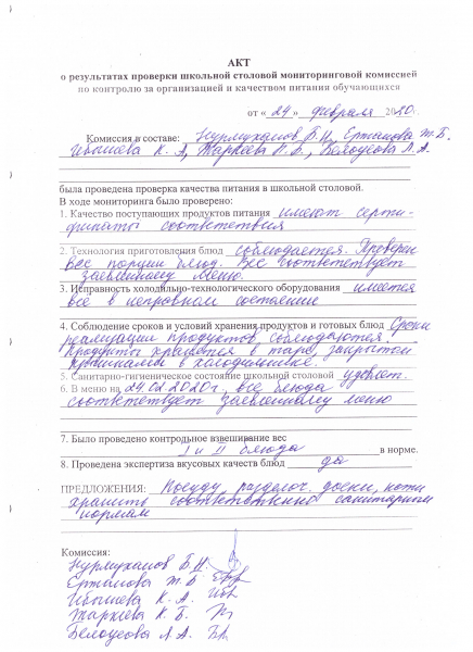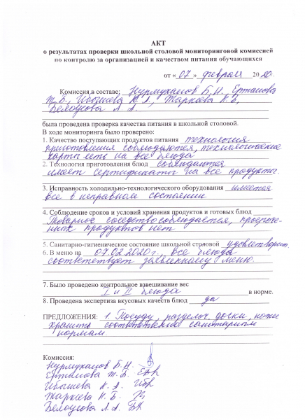 Мектеп асханасын тексеру актілері мен хаттамалары