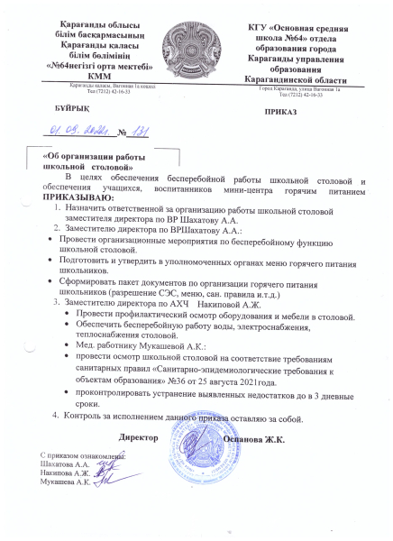 Қарағанды қаласы әкімдігінің "Қарағанды қаласы білім бөлімі" мемлекеттік мекемесінің "№64 негізгі орта мектебі" коммуналдық мемлекеттік мекемесі