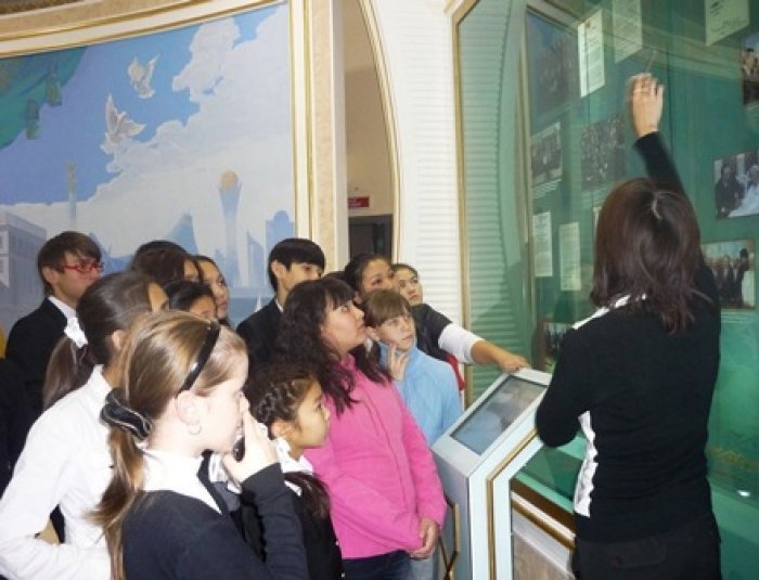 Экускурсия барысында Орталықтың экскурсоводтары оқушыларға Елбасының балалық шағы мен жастық кезі, достары мен серіктес әріптестері, сонымен қатар тәуелсіз Қазақстанның маңызды жетістіктері туралы баяндап берді. Оқушылар үлкен қызығушылықпен түрлі құжаттармен, ескі фотосуреттермен, миниатюра түрінде ұсынылған зауыт пен фабрикалардың макеттерімен және де басқа экспонаттармен танысты.
