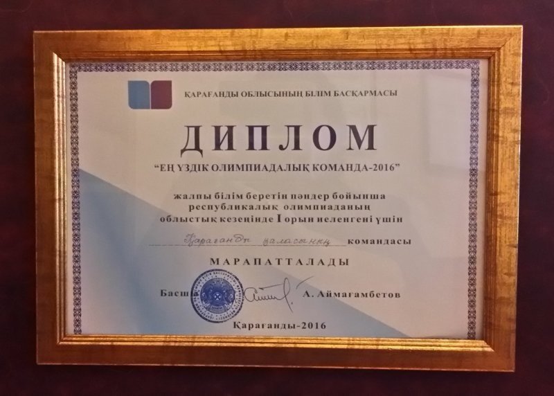 Қарағанды қаласы оқушылырының командасы он жыл қатар «Үздік олимпиадалық команда-2016 жыл» атағына ие болып отыр.