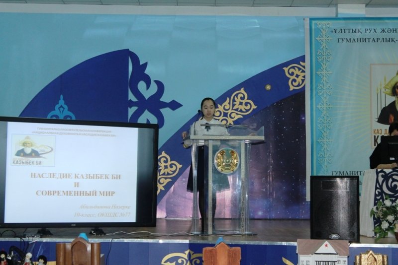 Білім бөліміне қарасты №102 МГ оқушысы Таирова Валерия, №77 МББК оқушысы Абильдинова Назерке, №16 ОМ оқушысы Тельман Улыкбек қазақ халқының даңқты ұлы, қоғам қайраткері, Қазақ хандығының дамуына зор үлес қосқан «Қаз дауысты Қазыбек» атанған Қазыбек би туралы қызықты жұмыстарын ұсына білді.