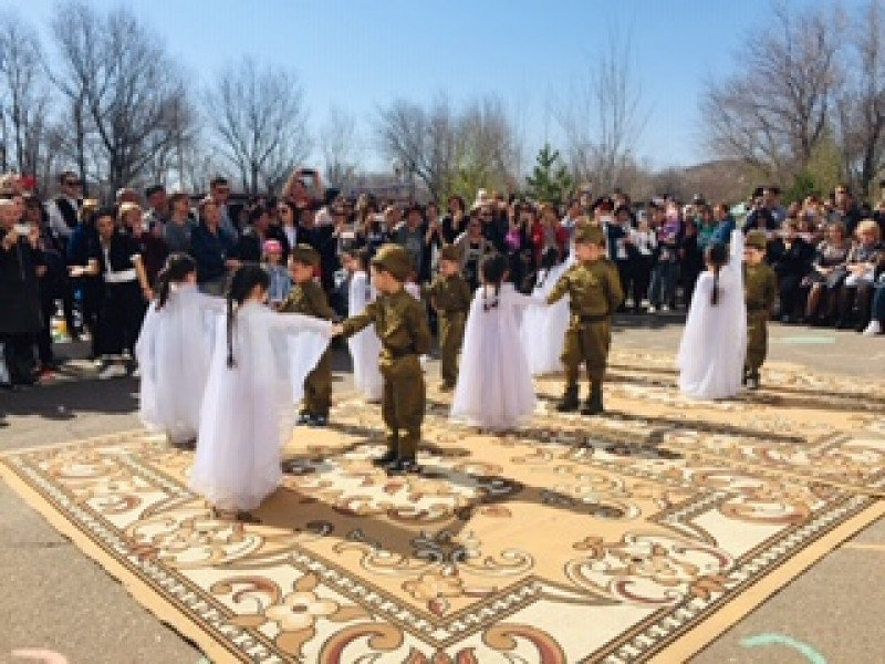 Для всех гостей выступили победители областных и республиканских конкурсов вокальная группа и хореографический ансамбль ясли-сада с композициями «Смуглянка» и «Карагандинский вальс».