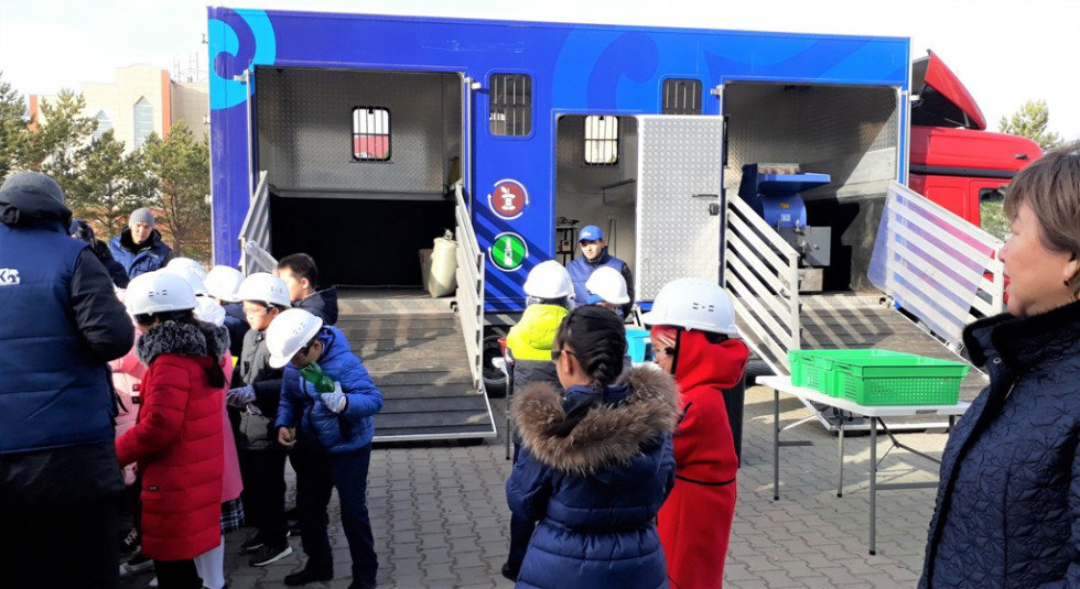 2019 жылғы 23 қазанында«Eco-challenge» республикалық жобасында үздік нәтиже көрсеткен №77 орта мектебінде «Eco Truck» жобасы таныстырылып, Қарағандыда пластик ыдыстарды қайта өңдейтін «Eco Truck» жылжымалы қабылдау бекеті іске қосылады. Жүк көлігіне орнатылған шағын зауыт күніне 5-6 тонна пластик ыдыстарды бірнеше фракцияда ұсақтап тартатын мүміндігі бар. Жылжымалы шағын зауыт облыстағы елді мекендерді аралап, пластик қалдықтарын өңдеуді қолға алмақ. «Eco Truck» жобасына Қарағандының ғана емес, Нұр-Сұлтан мен Алматы қалаларының білім беру мекемелері қызығушылық танытуда. Осы орайда мектеп оқушылары арасында қалдықты сұрыптап тастауға, оларды қайта өңдеуге жіберу арқылы қоршаған ортаны таза ұстауға шақыру көзделіп отыр.