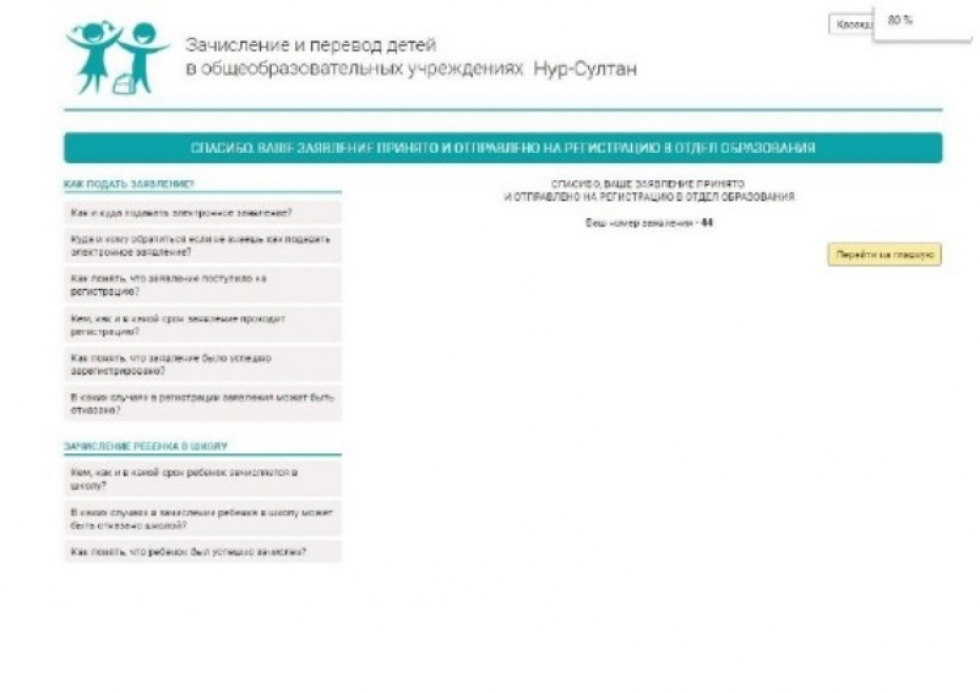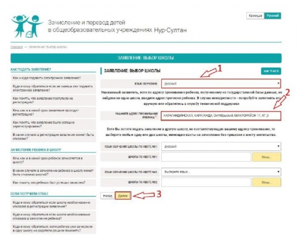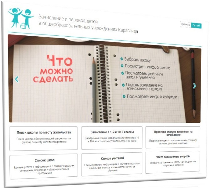 Прием учащихся в 1 класс в соответствии со Стандартом государственной услуги с 01 июня по 30 августа 2020 года ведется через автоматизированную систему school.kargoo.gov.kz. Автоматизированная регистрация в 1 класс позволяет родителям выбрать школу, ознакомиться с языком обучения, увидеть адреса, закрепленные за школами, а также осуществить передачу документов для зачисления и подать заявление в электронном виде.