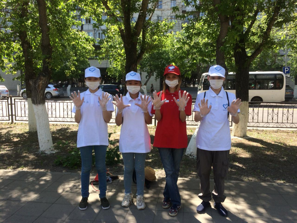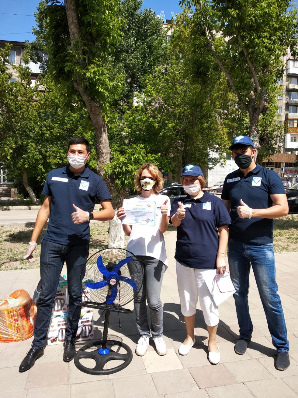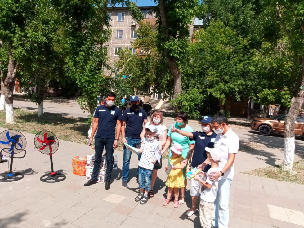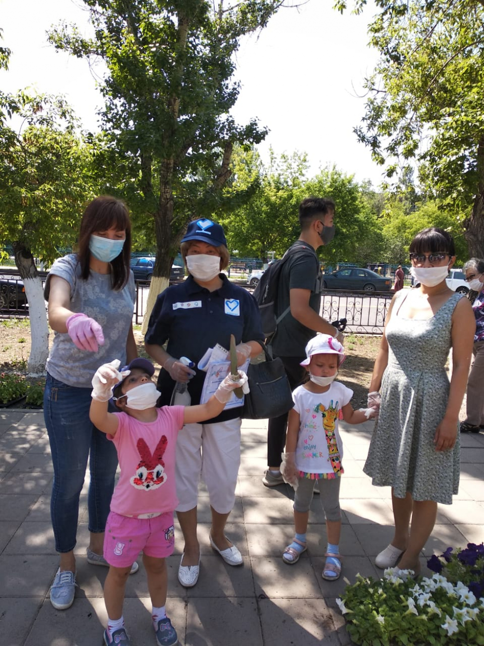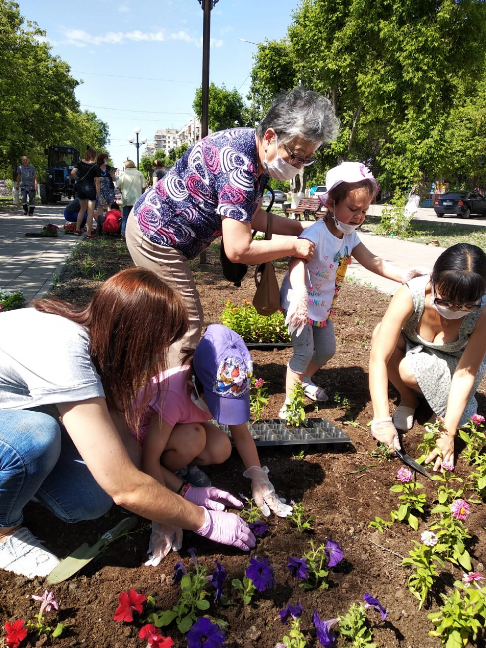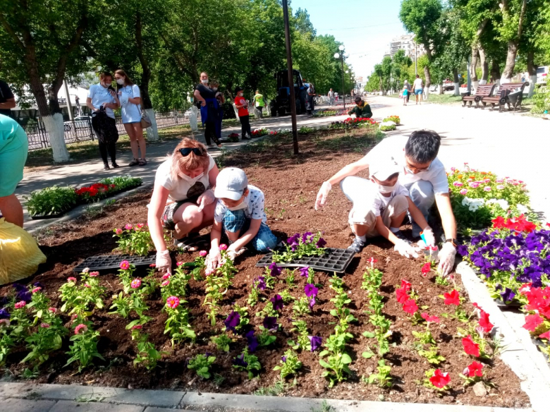 Дня защиты детей,победители посадили однолетние саженцы цветов у памятника Нуркену Абдирову в городе Караганде.