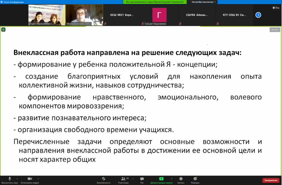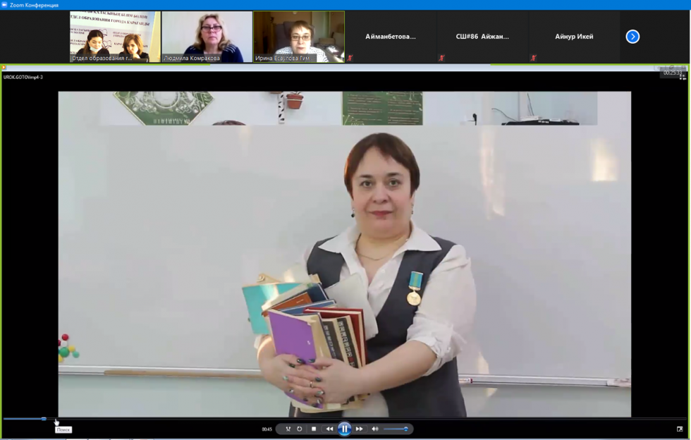 24.02.2021ж. №45 гимназияның информатика пәні мұғалімдері Есаулова И.А. және Комракова Л.А. ZOOM платформасы арқылы қашықтықтан «Информатика пәні бойынша сыныптан тыс жұмыстарды ұйымдастыру» тақырыбында информатика мұғалімдеріне арналған жас мұғалімдер мектебін өткізді.