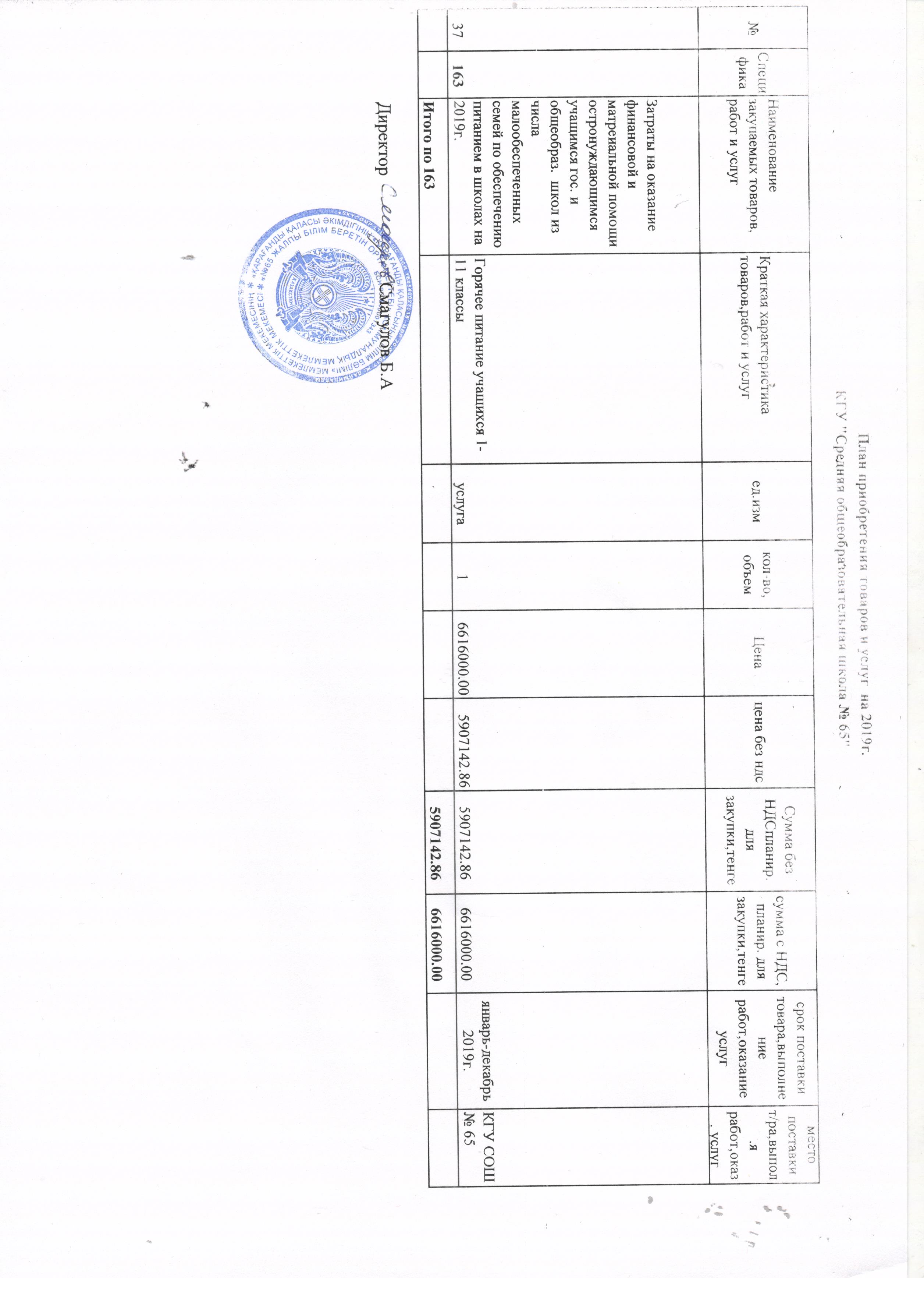 Название конкурса: 2019 жылғы қызметтер мен тауарларды сатып алу жоспары